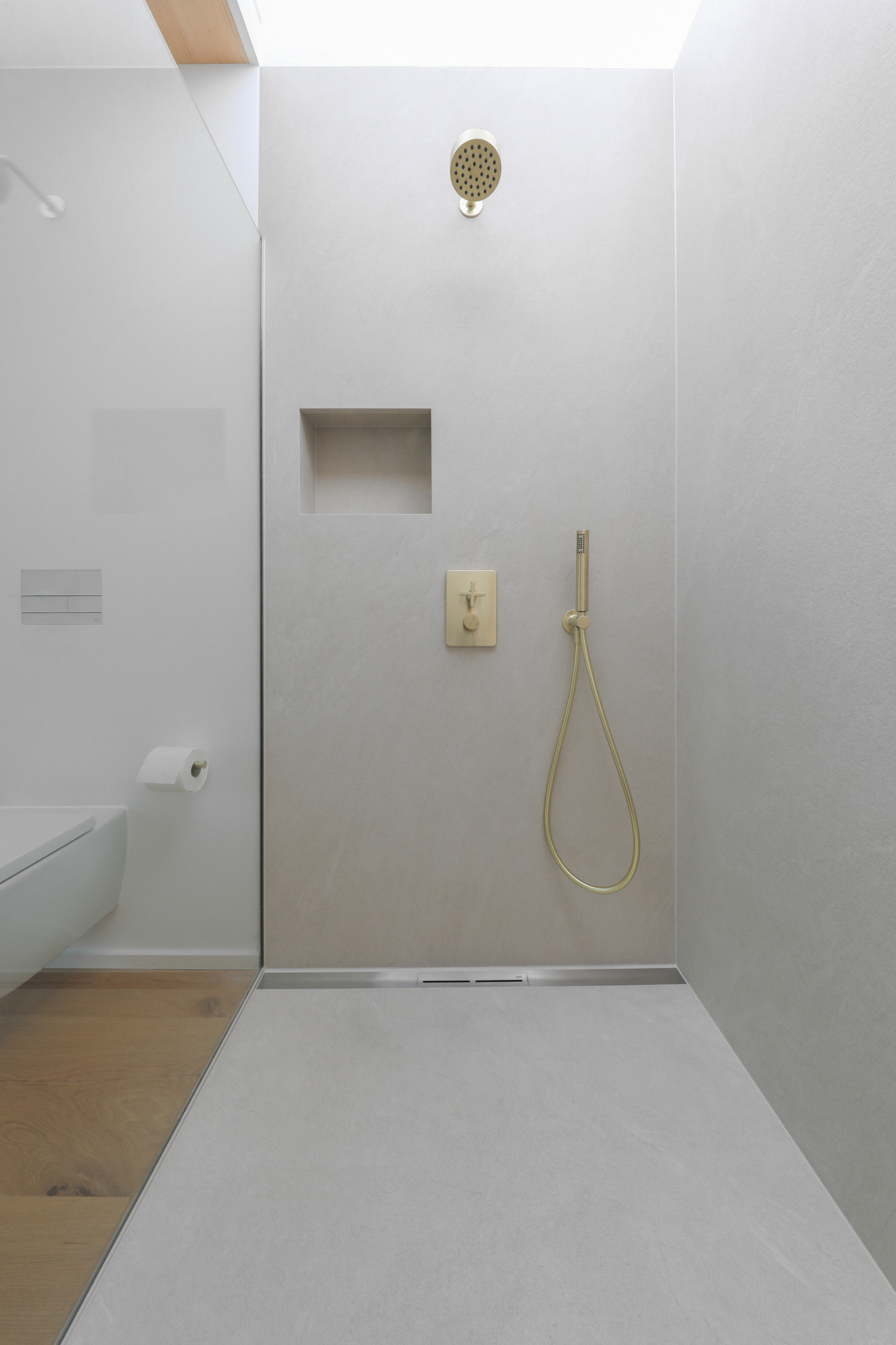 Der Boden in der Dusche ist auch aus einer Platte, das Wasser läuft optimal in eine Premium Ablaufrinne (Duschrinne) egal ob Boden- oder Wandablauf. Der Übergang zum restlichen Boden im Badezimmer ist plan, ohne Barrieren und Stolperkanten – Behinderten- und Altersgerecht mit höchsten Design Ansprüchen. Bei Sanierungen wird geprüft, ob und wie ein ebenerdiger Einbau möglich ist.