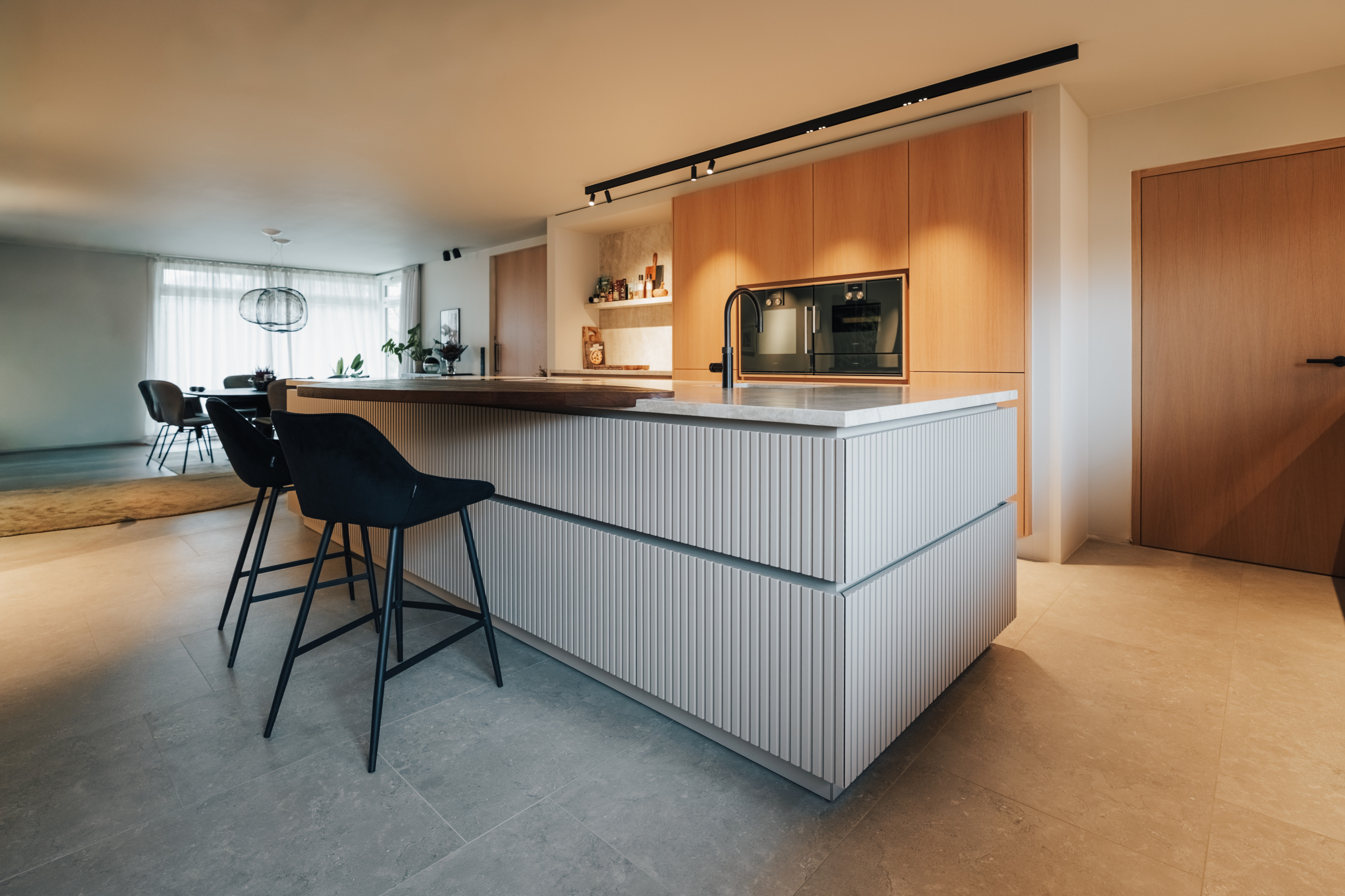 Das dezente Erscheinungsbild des Mahal Steins harmoniert perfekt mit aktuellen Küchendesigns. Seine helle Grundfarbe mit den charakteristischen Einschlüssen schafft eine ausgewogene Balance zwischen Natürlichkeit und moderner Ästhetik. Die harmonische Wirkung entfaltet sich besonders in offenen Wohnküchen und schafft eine einladende Atmosphäre, die elegant und massgeschneidert wirkt.