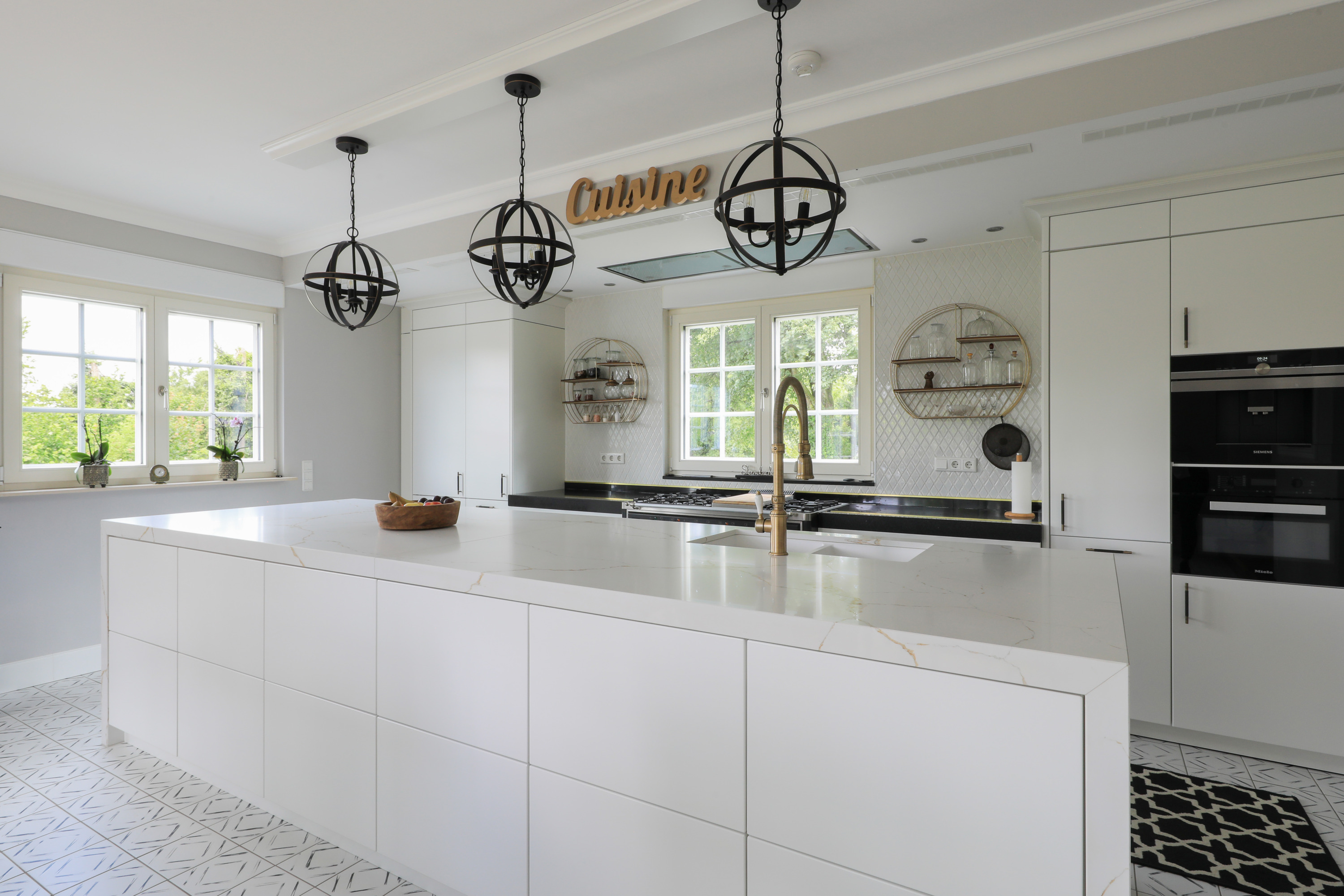 Die Kantenbearbeitung wählen Sie aus verschiedenen Profilen. Gerade Kanten wirken modern und puristisch, während gefaste oder abgerundete Profile einen klassischen Charakter unterstreichen. Auch Tropfkanten an Überständen lassen sich realisieren. Die Plattenstärke variiert je nach Gestaltungswunsch zwischen 20 und 40 Millimetern. Bei der Oberflächenbehandlung stehen polierte, geschliffene oder satinierte Varianten zur Auswahl. Polierte Oberflächen reflektieren Licht und betonen die Farbintensität, während matte Bearbeitungen dezenter wirken und Fingerabdrücke weniger sichtbar machen.